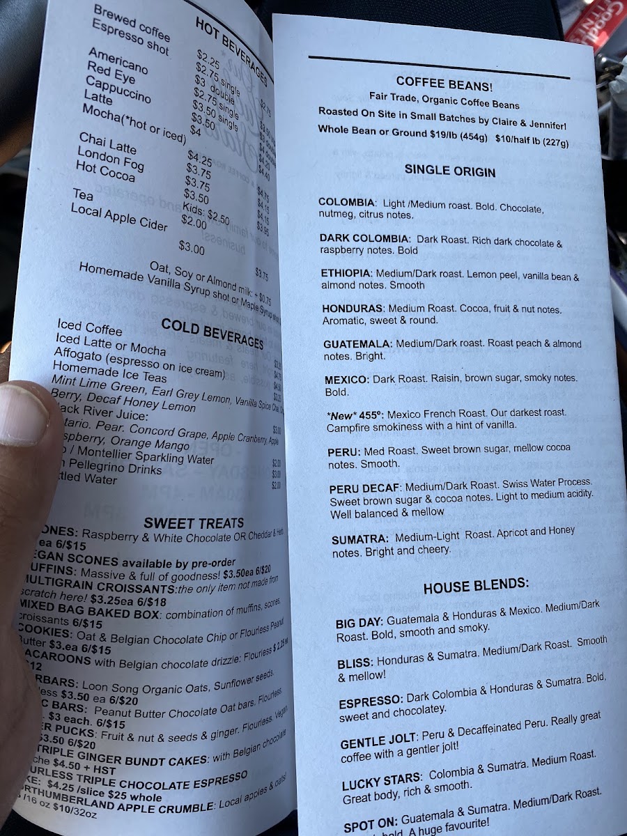 From a reviewer’s perspective, the menu at K Okay Café & Roasters offers a delightful balance of savory, sweet, and specialty beverages that cater to a variety of tastes. The café’s savory selections, including the Daily Soup, Ham & Brie, Genoa Panini, Lemon Chicken Artichoke, and Cottage Bake, showcase comforting flavors perfect for a light lunch or brunch. Beverage options are equally inviting, with hot drinks like Brewed Coffee, Espresso Shot, Americano, Red Eye, and Cappuccino, alongside cold choices such as Iced Coffee, Affogato, and Tled Water. For those with a sweet tooth, the Egan Scones, Uffins, Mixed Bag Baked Box Cookies, and C Bars provide a tempting selection of treats to pair with any drink. Coffee enthusiasts will appreciate the single-origin beans from Colombia, Dark Colombia, Ethiopia, Honduras, and Guatemala, as well as the house blends like Big Day, Bliss, Espresso Gentle Jolt, and Lucky Stars, each offering distinctive flavor profiles. Complementing these offerings are refreshing specialty beverages such as Apple Lemon & Fennel, Blackcurrent Lemonade, Cherry & Mint, Cherry & Vanilla, and the herbal Foraged Botanicals Tonic, which add a creative, artisanal touch to the menu. Overall, the menu at K Okay Café & Roasters demonstrates careful curation, balancing classic café staples with unique, handcrafted options, making it a satisfying destination for both casual diners and coffee aficionados alike.